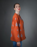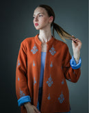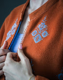 Veste brodée Chahdy – Laine rouille & motif berbère fait main